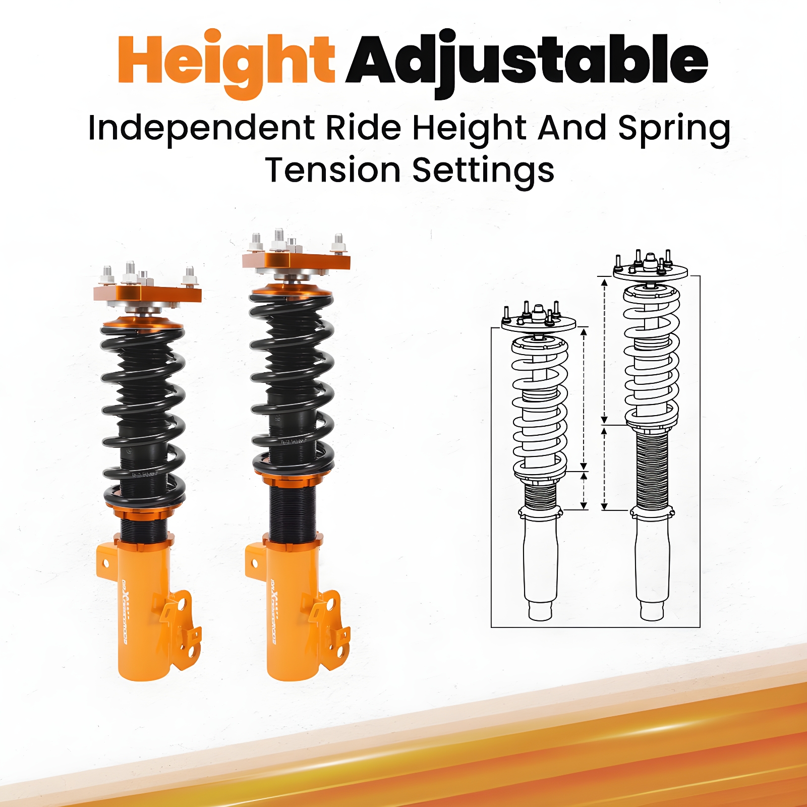1. Lowered height adjustment from 25-75mm (depends on vehicle models)which allows a lower center of gravity and also add a more aggressive stance