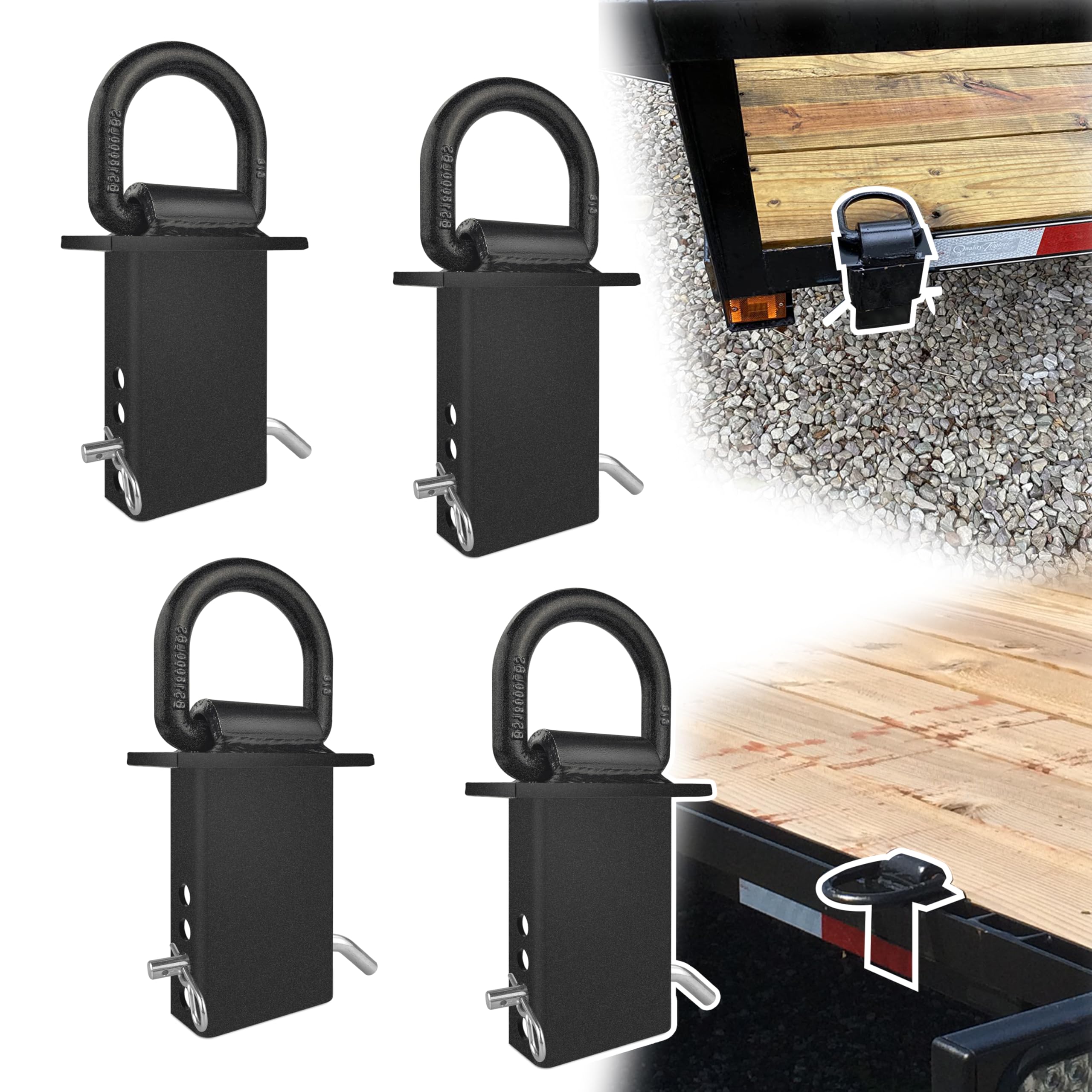 VONLX Stake Pocket D Rings 4Pcs 18000lbs Heavy Duty Removable D-Ring Stake Pocket Tie Down for Utility Trailers and Flatbeds with Hitch Pin, Removable Tie Down Utility for Flatbed Cargo Trucks, Black