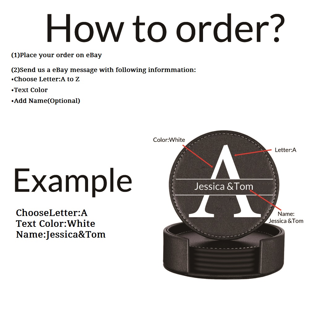 Customize a unique gift with your own photo/name/Logo, Leather coasters with holder can be used for home, office, bar, coffee, pub. They also can be used as placemat, which add decoration to your table.