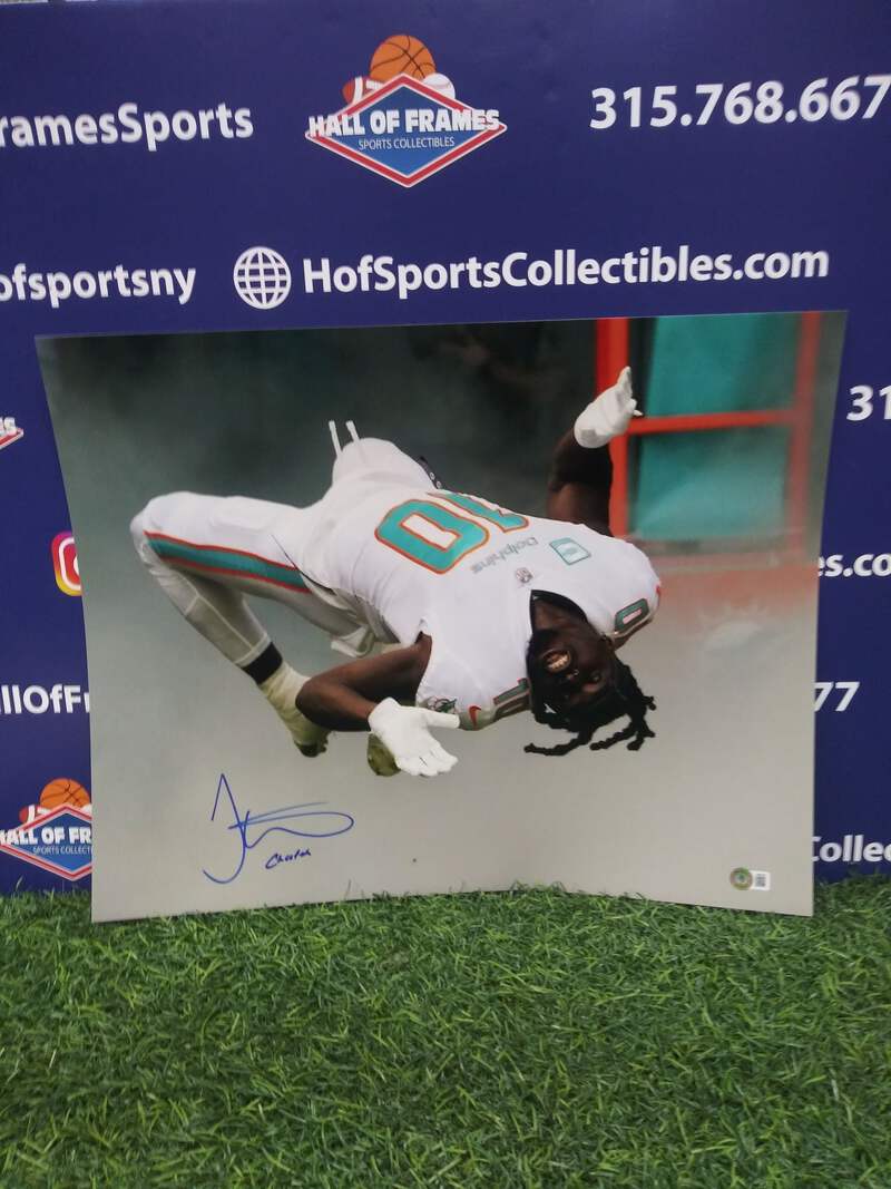 TYREEK HILL SIGEND DOLPHINS BACK FLIP 16X20 INSC. CHEETAH - BECKETT
