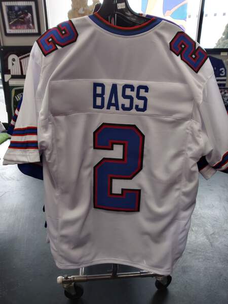 TYLER BASS BILLS SEWN STITCHED WHITE JERSEY SIZE MENS XL