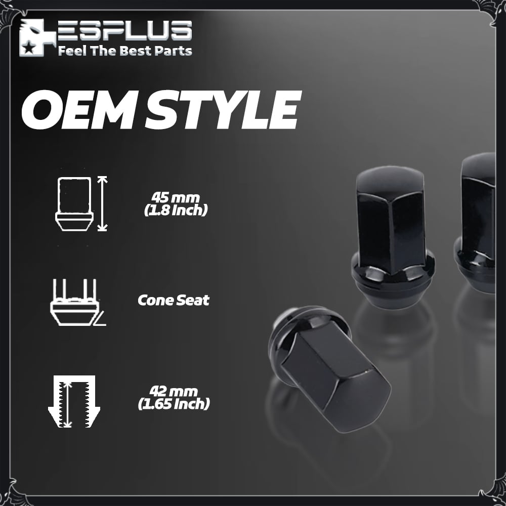 For stock wheel users, we suggest to use shape of existing lug nuts' Flange, Seat Type, and Height as refernce before buying.
