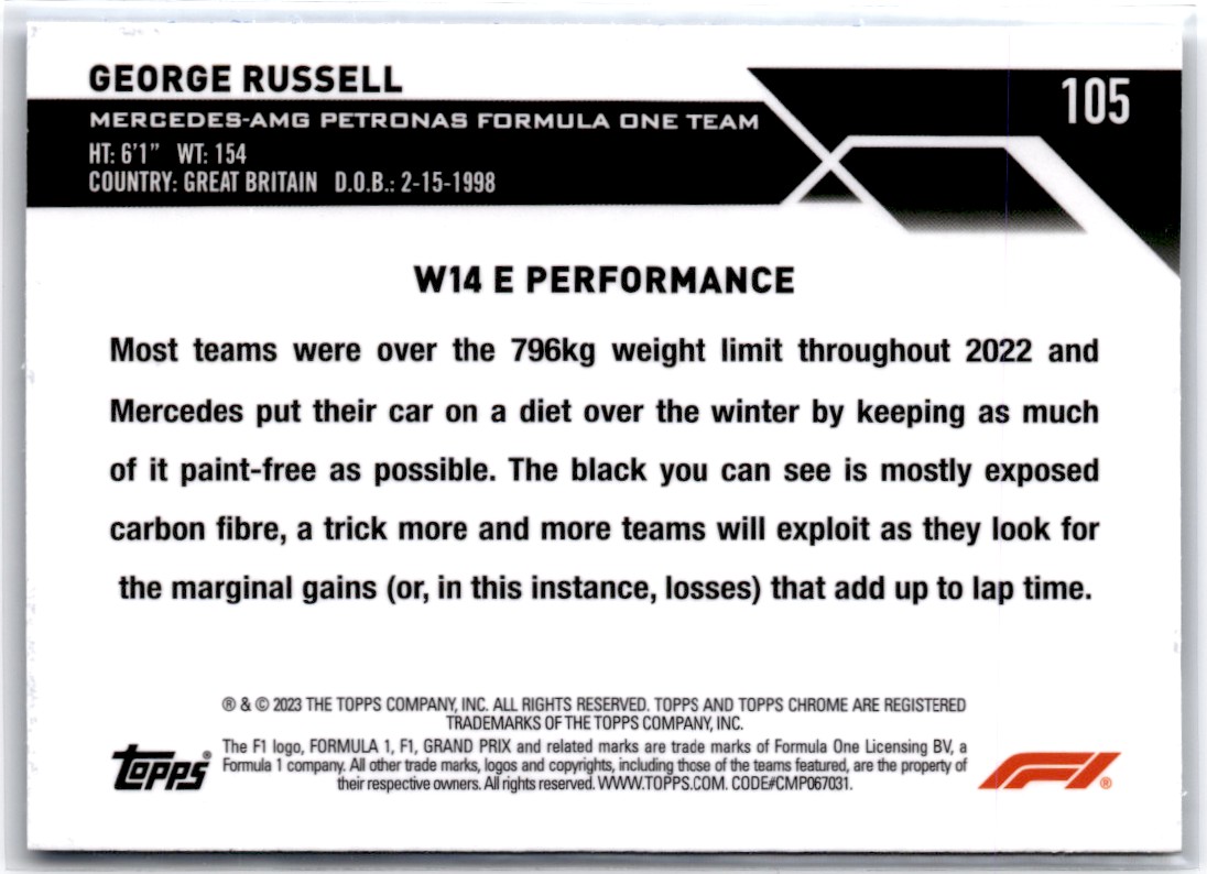2023-24 Topps Chrome F1 Sapphire George Russell Mercedes #105