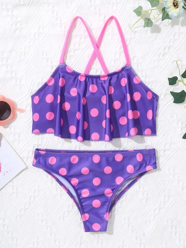 Kids Swimsuit Bathing Suit Flounce Bikini Set Beach Wear 2 Pieces with Small Dots for Toddler Big Girl.