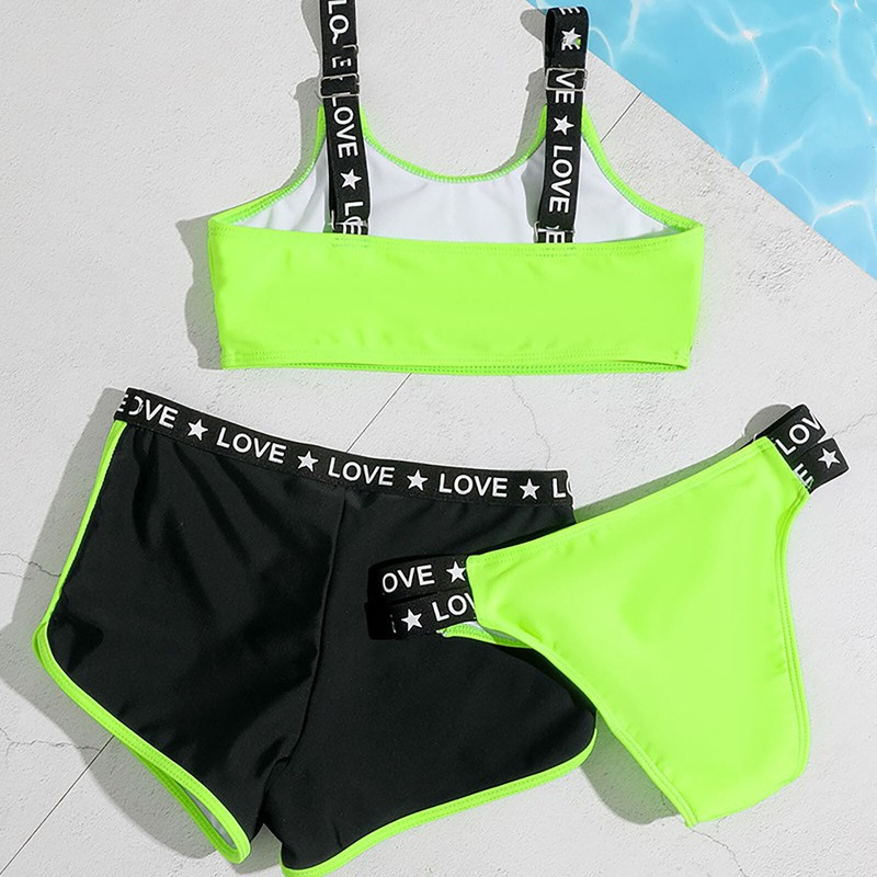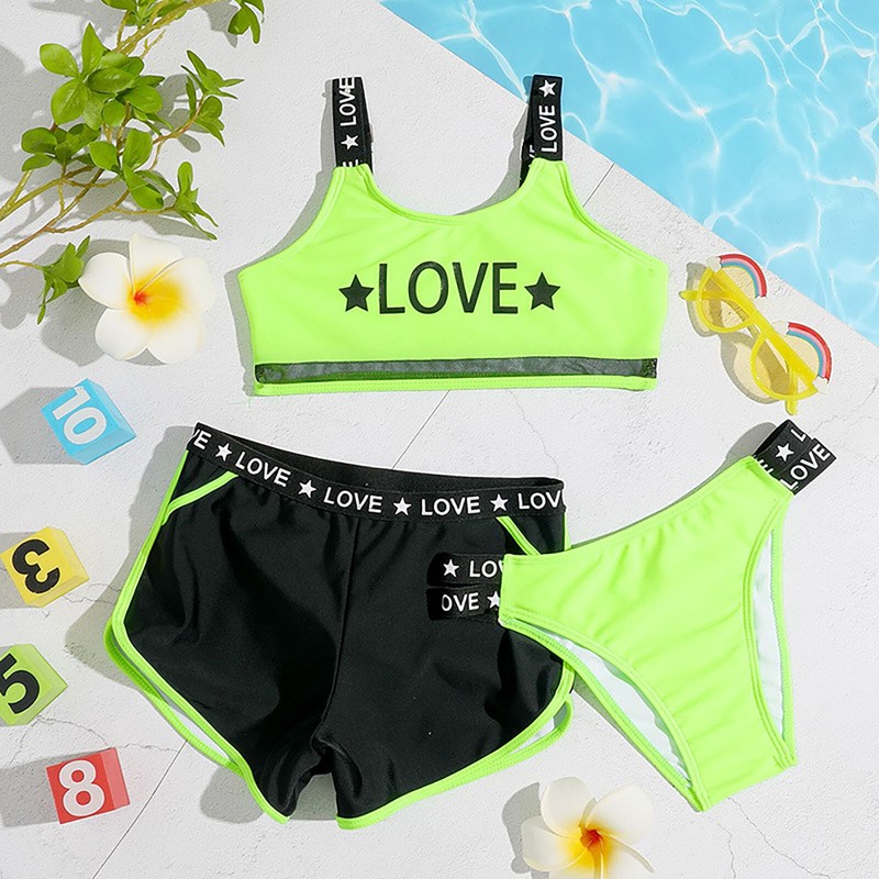 3Pcs swim vest, shorts and bottoms for girls, water sport swimwear make girls look active and chic at beach.