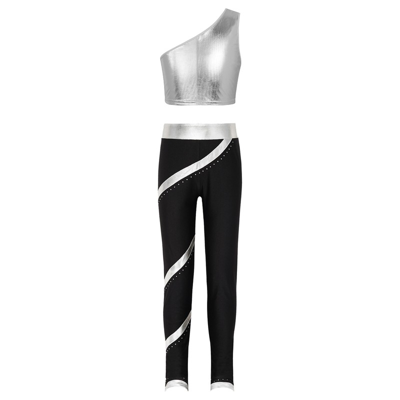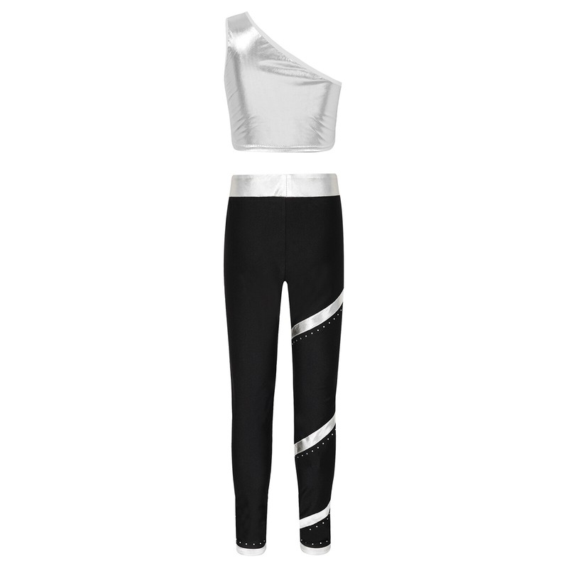 Single shoulder, slant shoulder, shiny metallic fabric, makes kids catch more eyes.