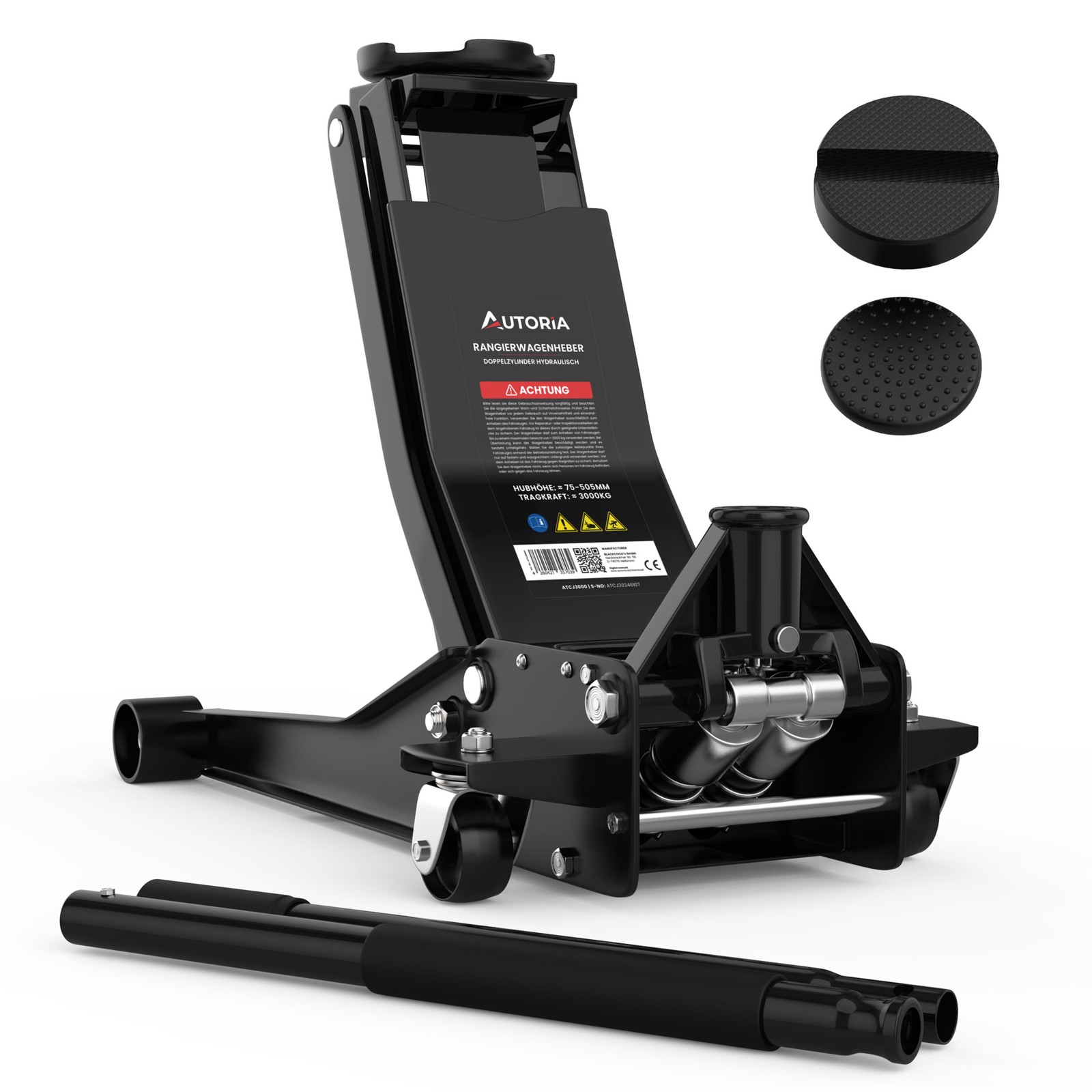 Lieferumfang 1x AUTORIA Wagenheber hydraulisch 3T Ultra Flach | 75-505mm