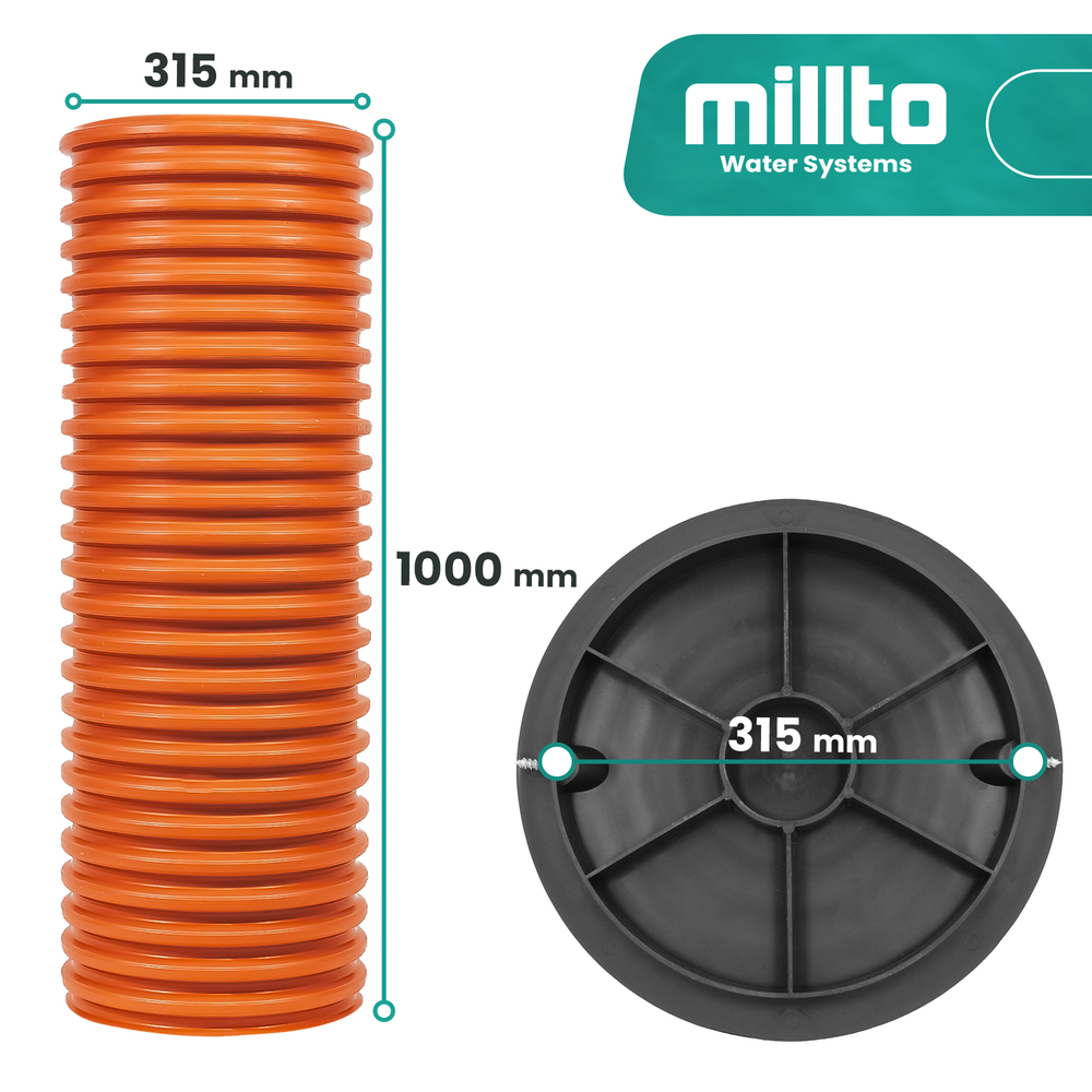 Steigrohr Schachtrohr Wellrohr DN315 100cm Kanalschacht Kanalrohr mit Deckel A15