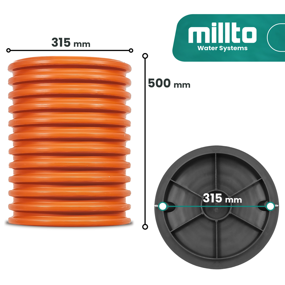 Steigrohr Schachtrohr Wellrohr DN315 50cm Kanalschacht Kanalrohr mit Deckel A15
