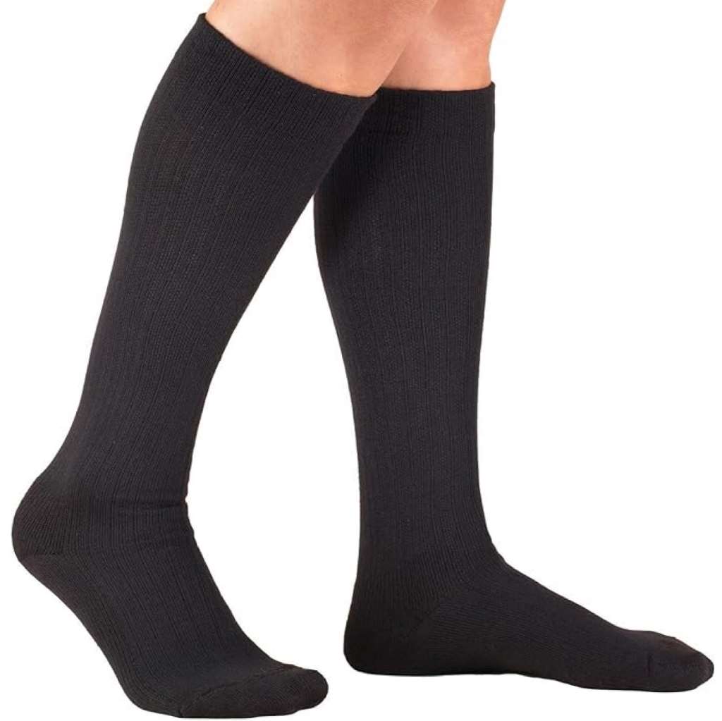 Designed to resemble a traditional dress sock with the added health benefits of compression technology, it features five intervals of therapeutic graduated compression which is greatest at the ankle, then gradually decreases up the leg.