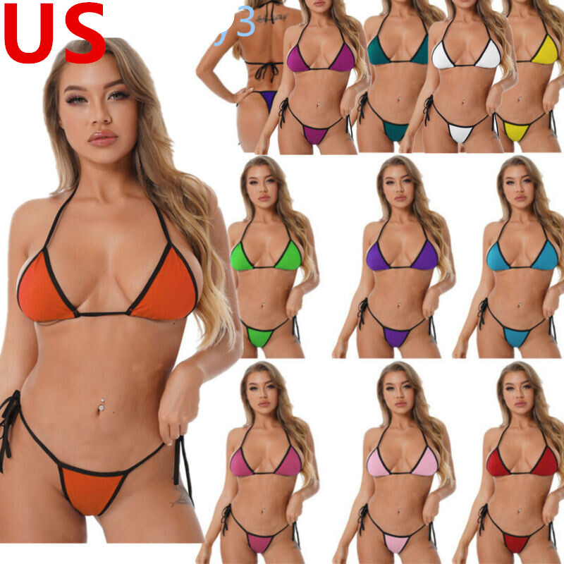 Women Shiny Metallic Patent Leather Bodysuit Halter Neck Lace-up Leotard Lingerie Micro Bikini.