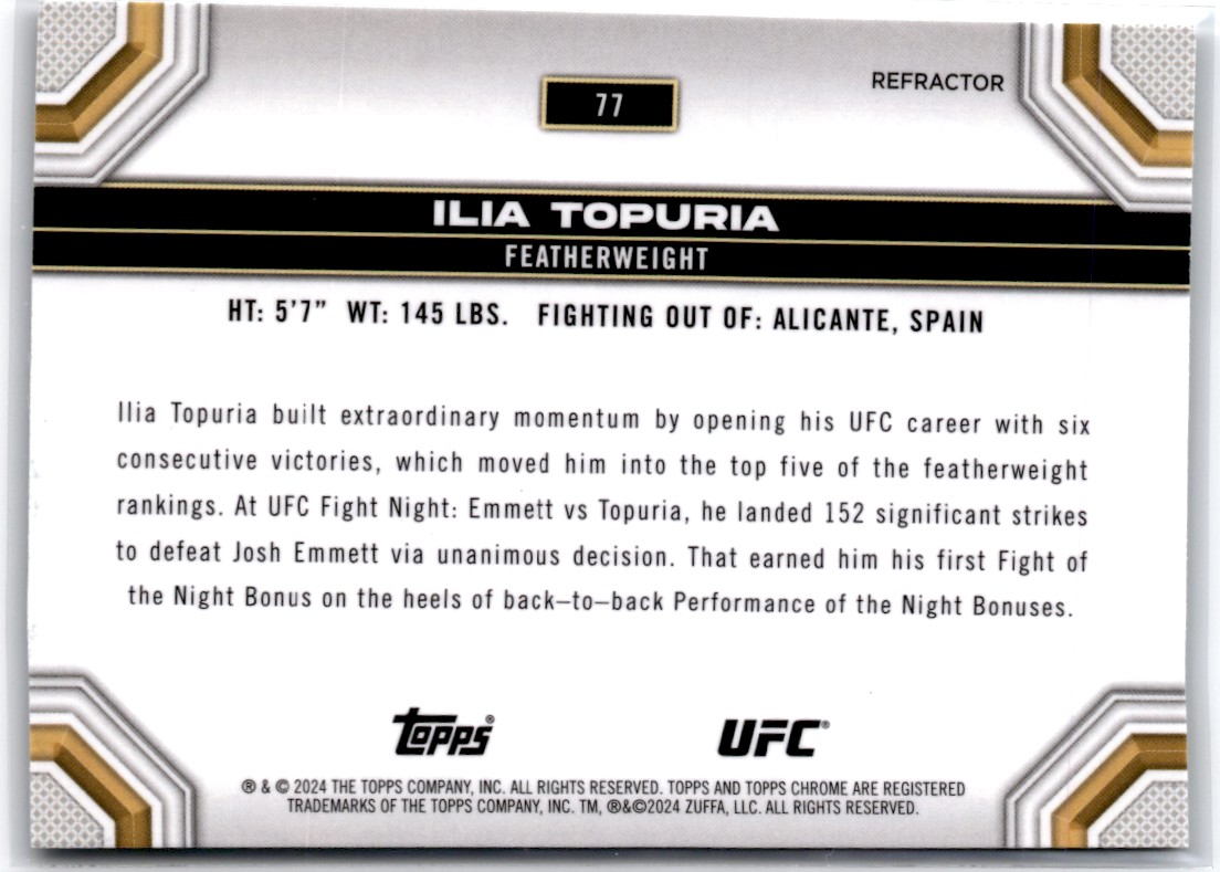 2023-24 Topps Chrome UFC Refractor Ilia Topuria #77
