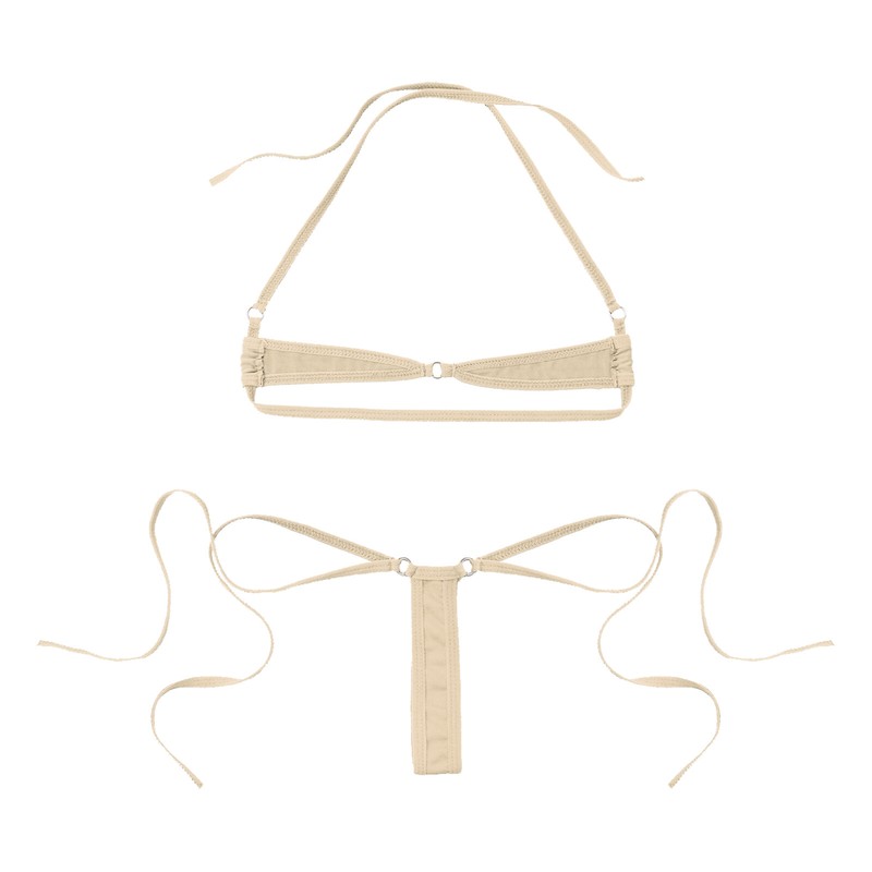 This two-piece micro bikini set only covers private parts, with minimal coverage to highlight the advantage of female body and make you more attractive.