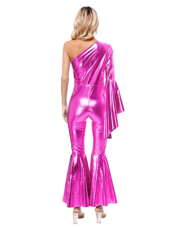 Flare sleeve jumpsuit for women, one shoulder and bell-bottom design makes you look eye-catching and unique in the crowd.
