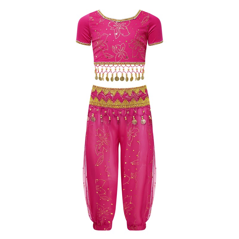 Girl’s belly dance costume with floral print makes your girl look more beautiful and eye-catching in the crowd.