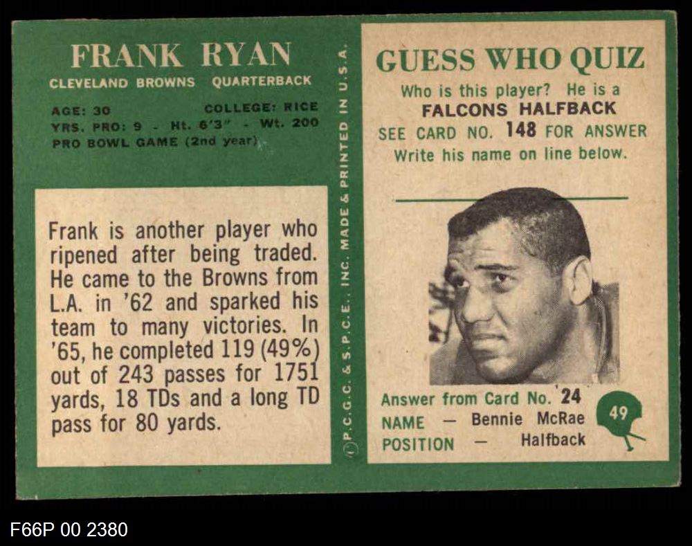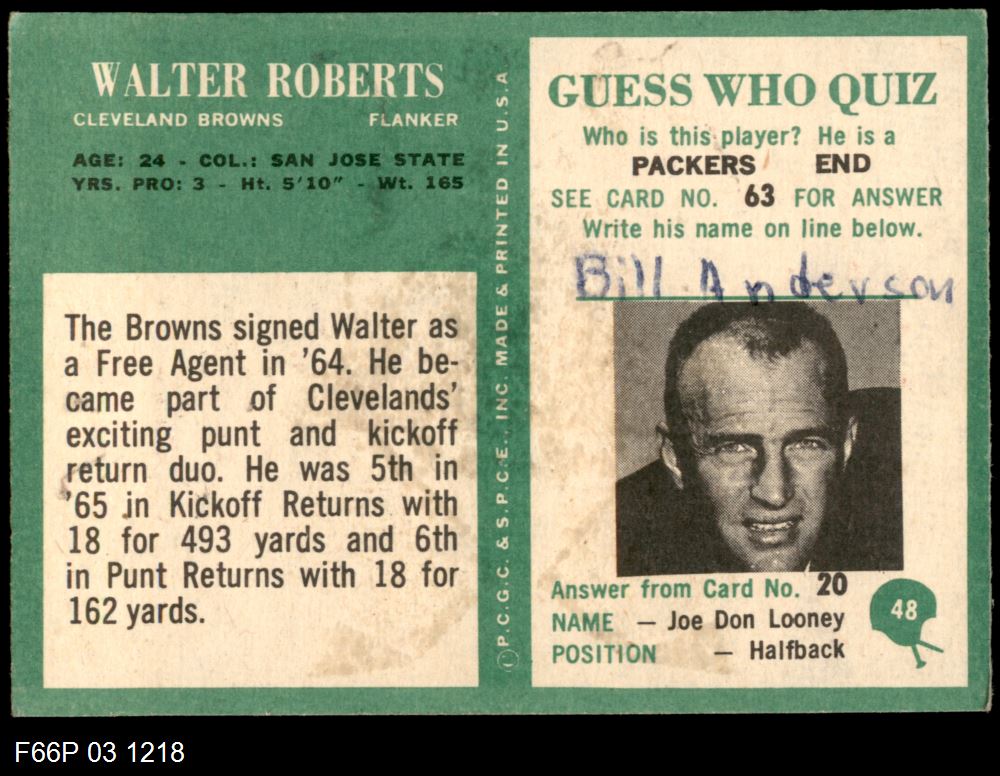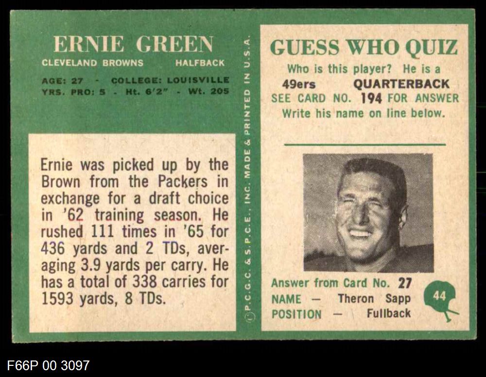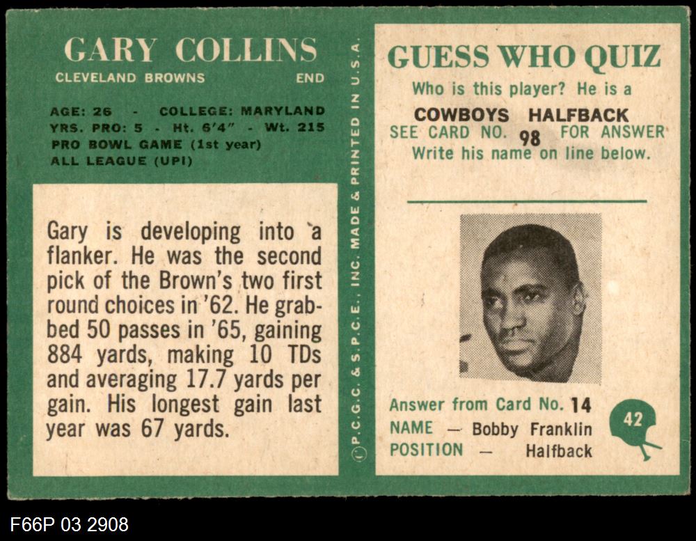 1966 Philadelphia Cleveland Browns Team Set Browns-FB 3 - VG 5470340