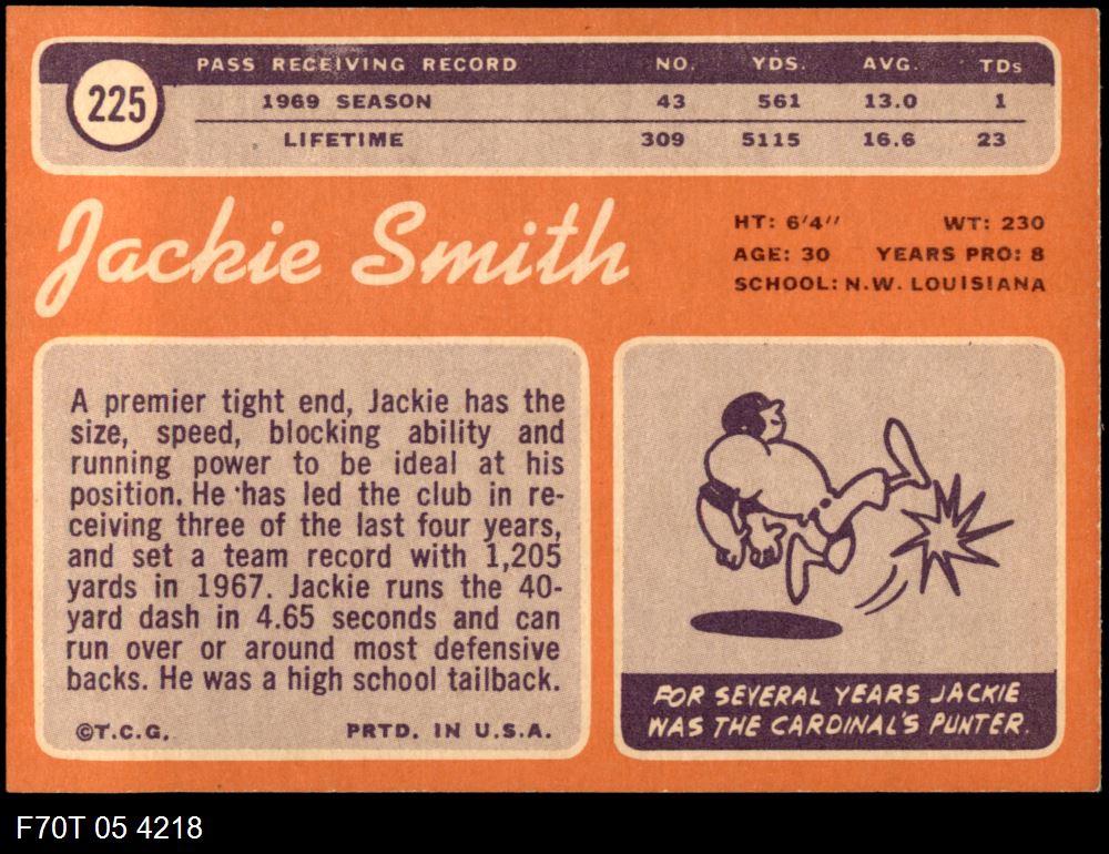 | 1970 Topps #225 Jackie Smith | 5 - EX | Front | Back |