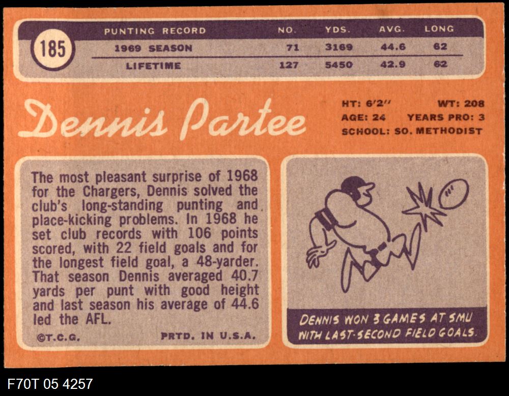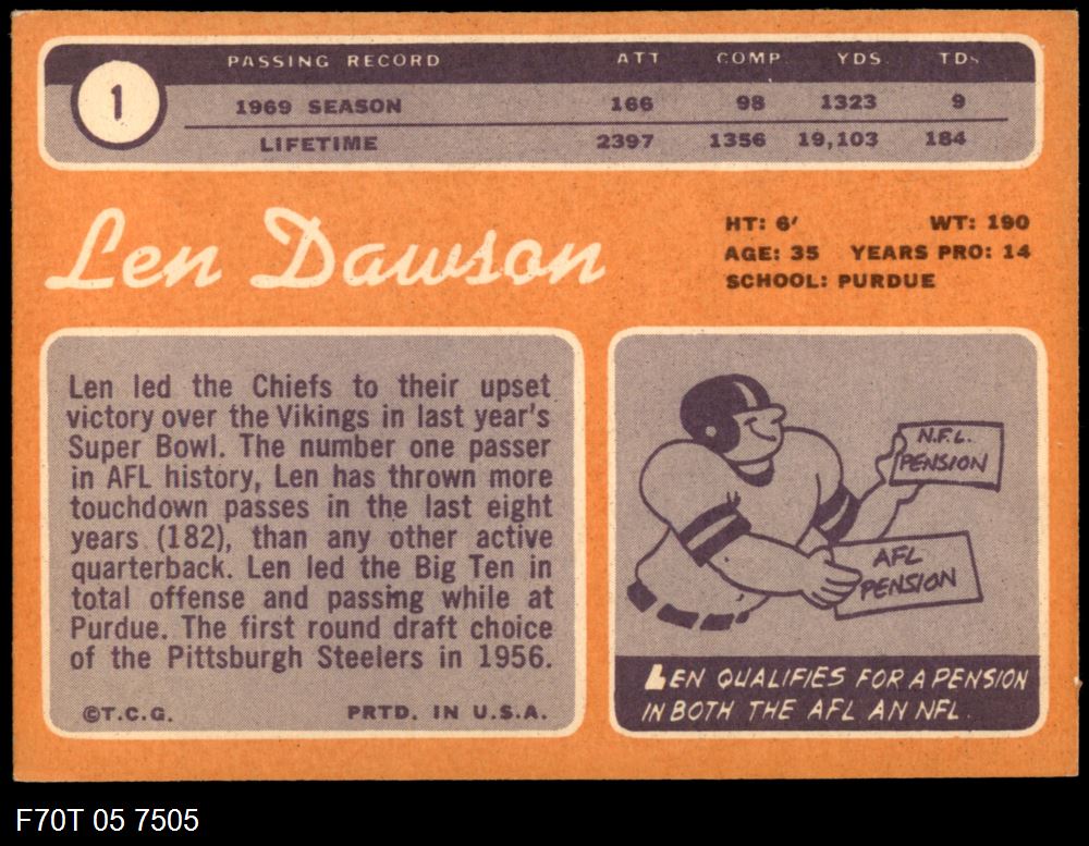 | 1970 Topps #1 Len Dawson | 5 - EX | Front | Back |