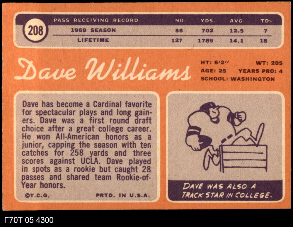 | 1970 Topps #208 Dave Williams | 5 - EX | Front | Back |