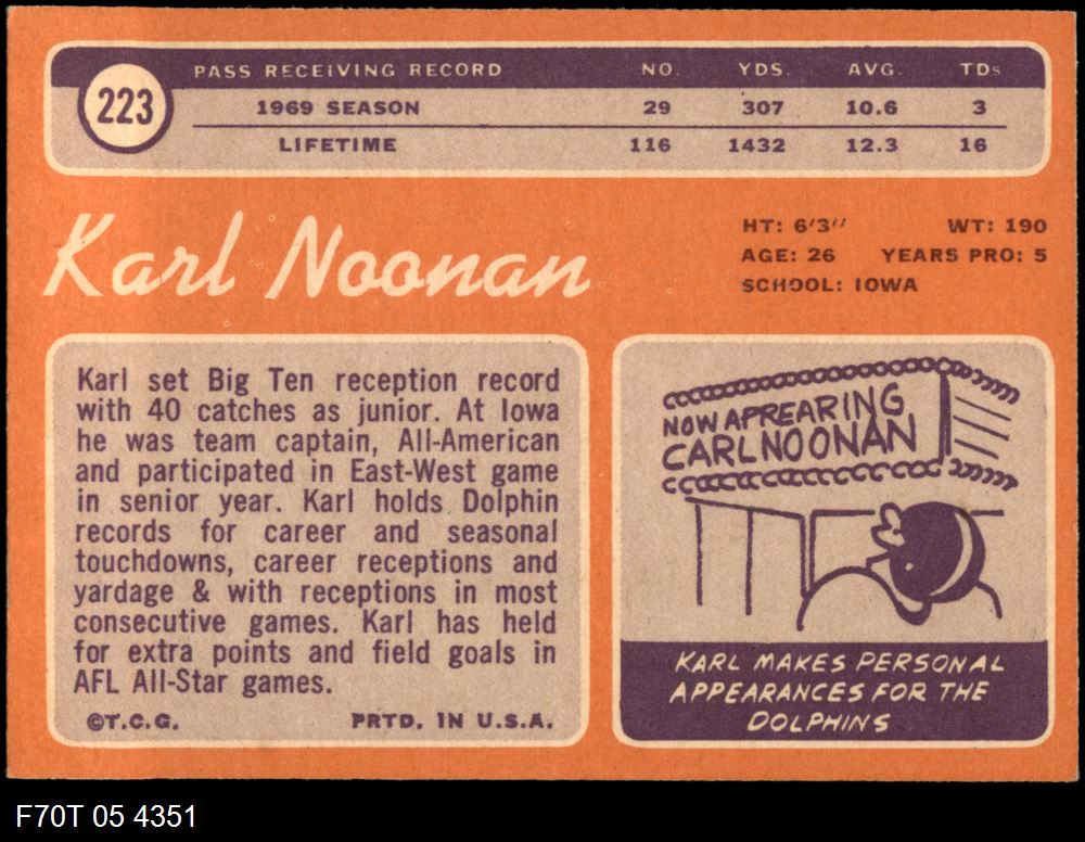 | 1970 Topps #223 Karl Noonan | 6 - EX/MT | Front | Back |