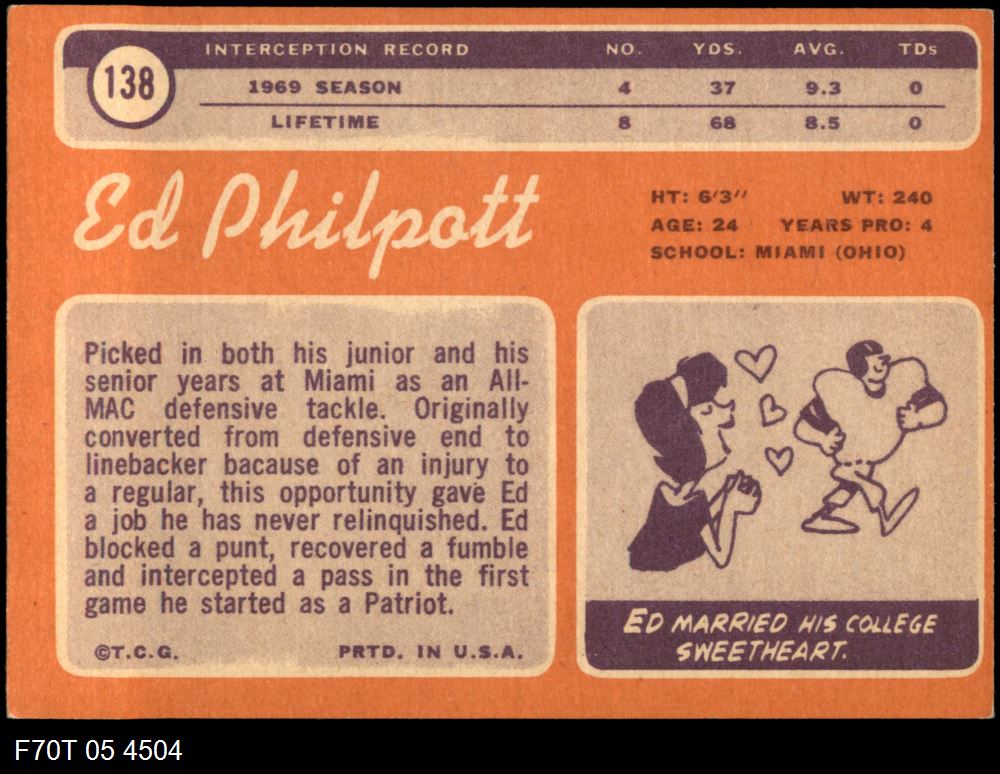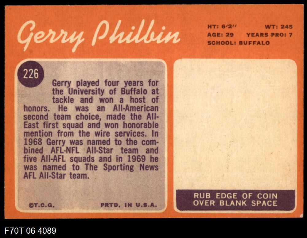 | 1970 Topps #226 Gerry Philbin | 5 - EX | Front | Back |