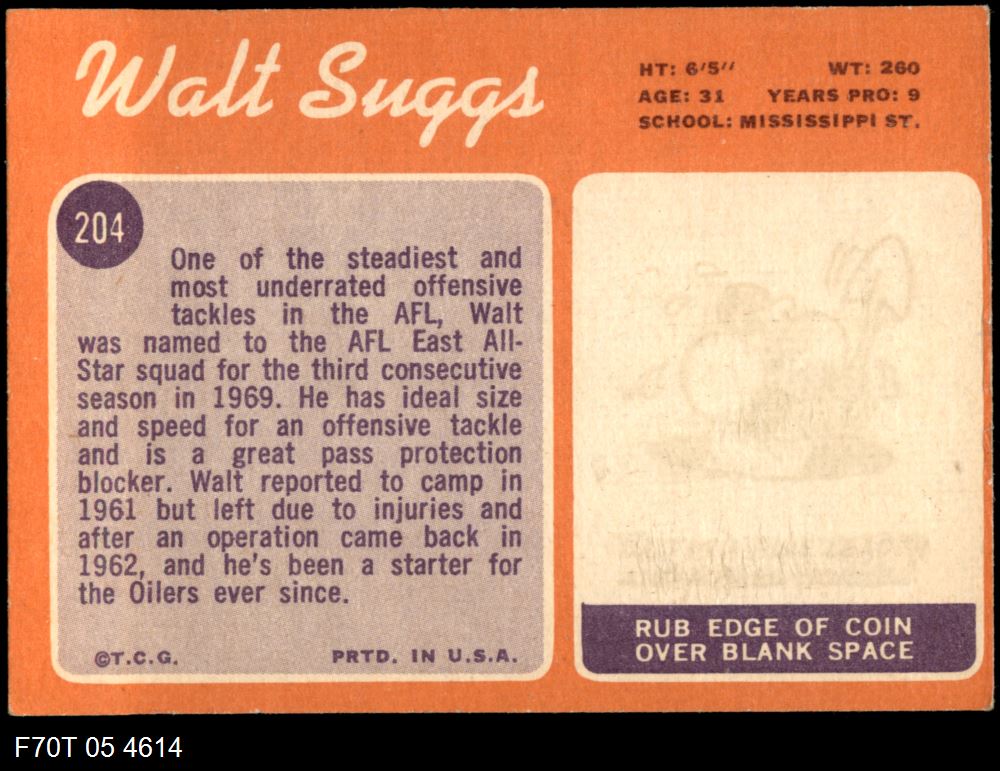 | 1970 Topps #204 Walt Suggs | 5 - EX | Front | Back |