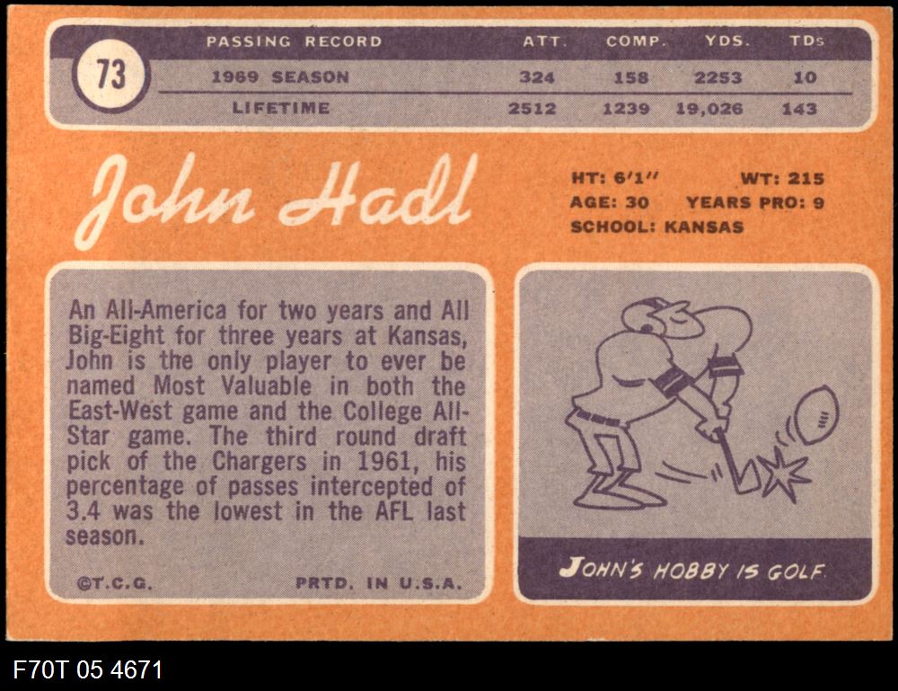 | 1970 Topps #73 John Hadl | 5 - EX | Front | Back |
