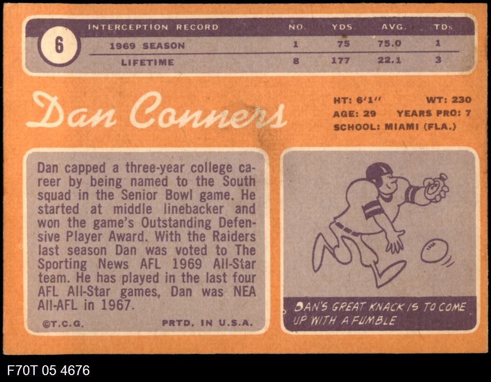 | 1970 Topps #6 Dan Conners | 5 - EX | Front | Back |