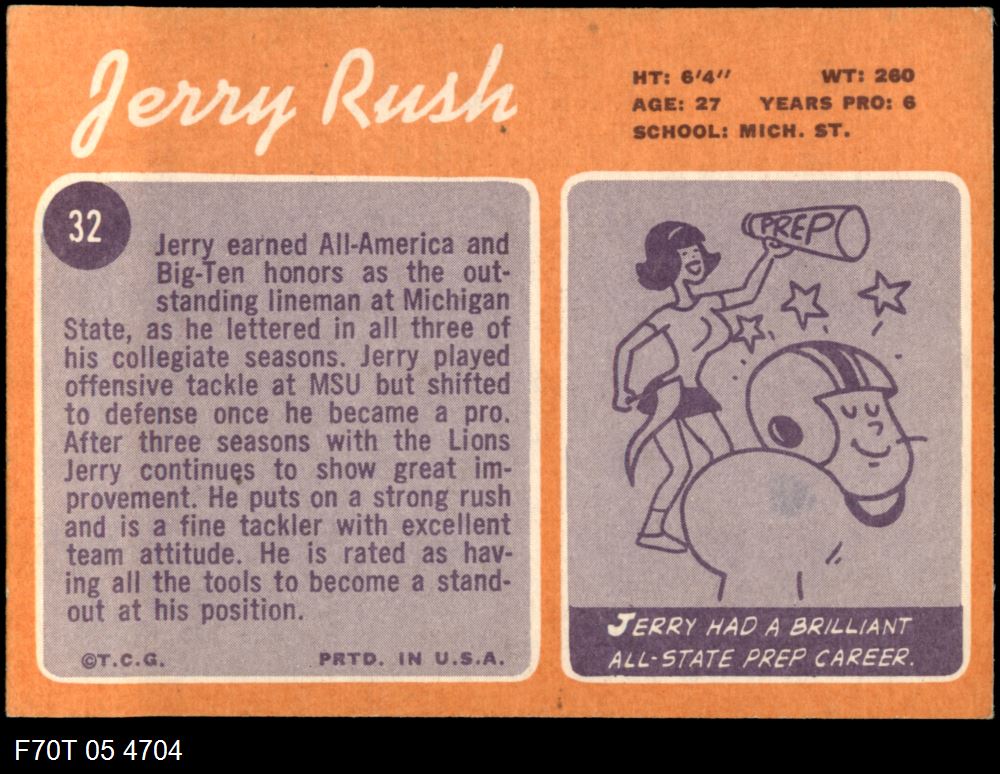 | 1970 Topps #32 Jerry Rush | 4 - VG/EX | Front | Back |