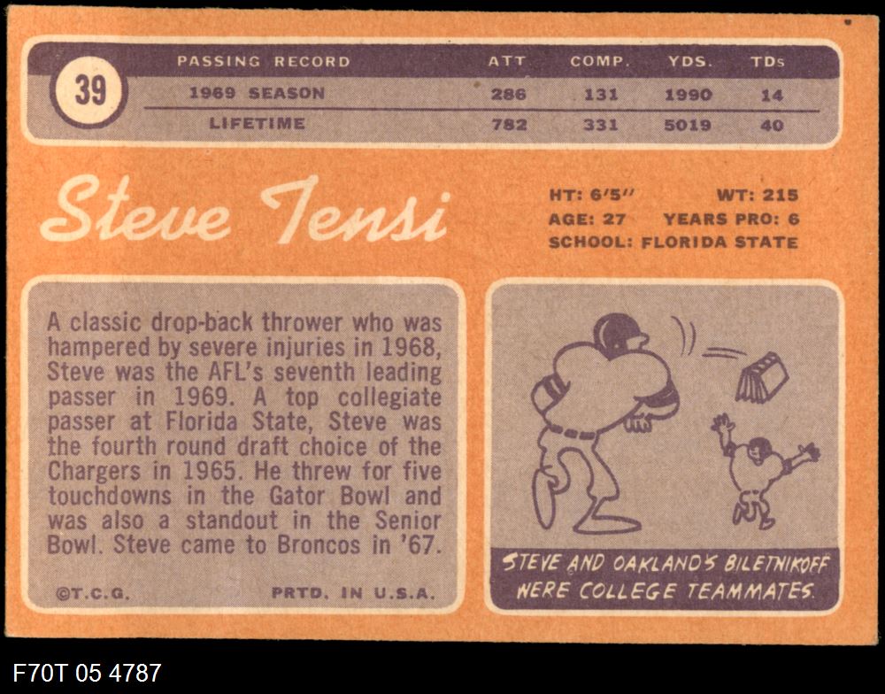 | 1970 Topps #39 Steve Tensi | 4 - VG/EX | Front | Back |