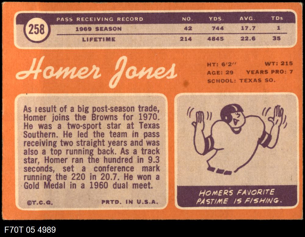 | 1970 Topps #258 Homer Jones | 4 - VG/EX | Front | Back |