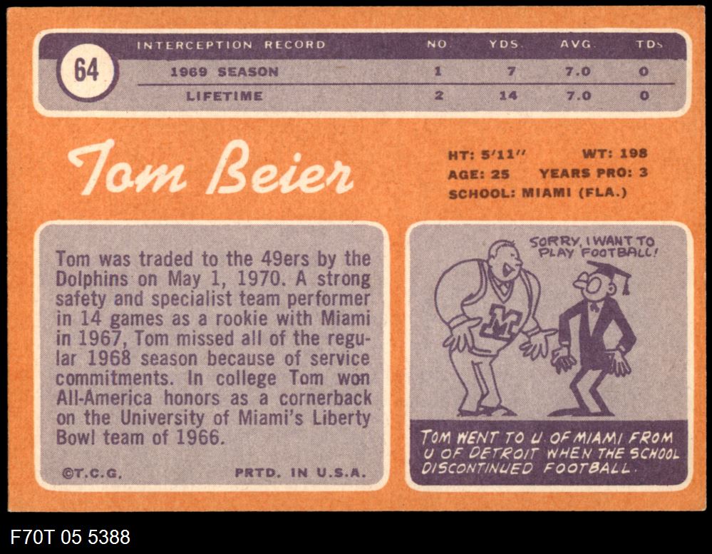 | 1970 Topps #64 Tom Beier | 4 - VG/EX | Front | Back |