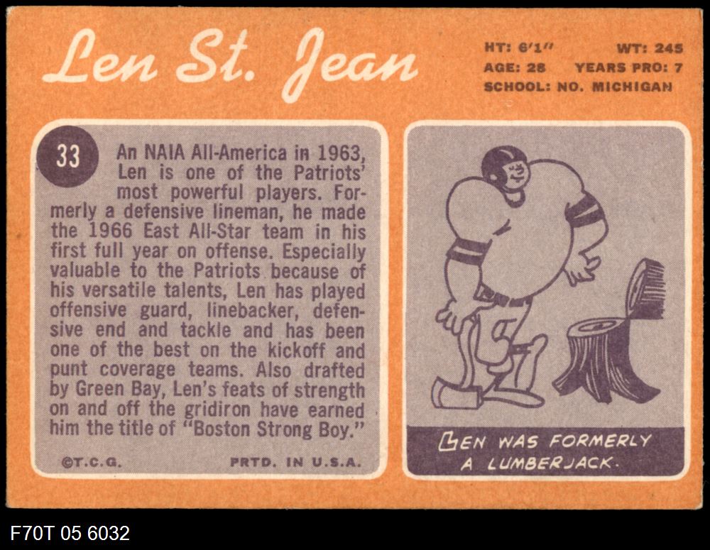 | 1970 Topps #33 Len St. Jean | 3 - VG | Front | Back |