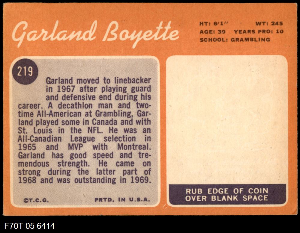 | 1970 Topps #219 Garland Boyette | 5 - EX | Front | Back |