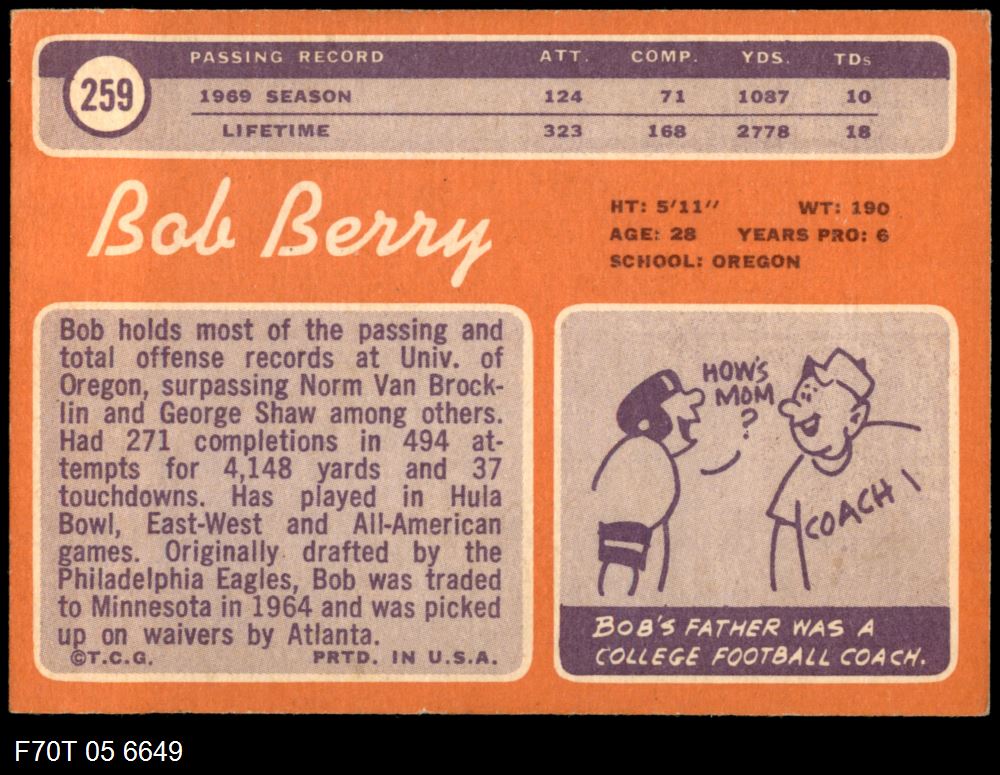 | 1970 Topps #259 Bob Berry | 5 - EX | Front | Back |