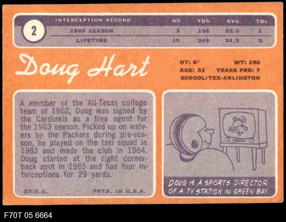 | 1970 Topps #2 Doug Hart | 5 - EX | Front | Back |