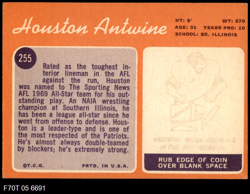 | 1970 Topps #255 Houston Antwine | 4 - VG/EX | Front | Back |