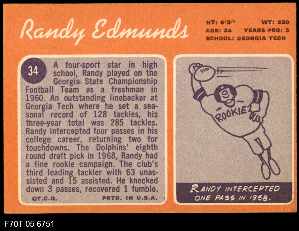 | 1970 Topps #34 Randy Edmunds | 5 - EX | Front | Back |