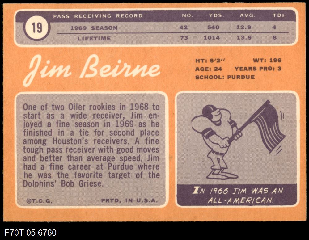 | 1970 Topps #19 Jim Beirne | 5 - EX | Front | Back |