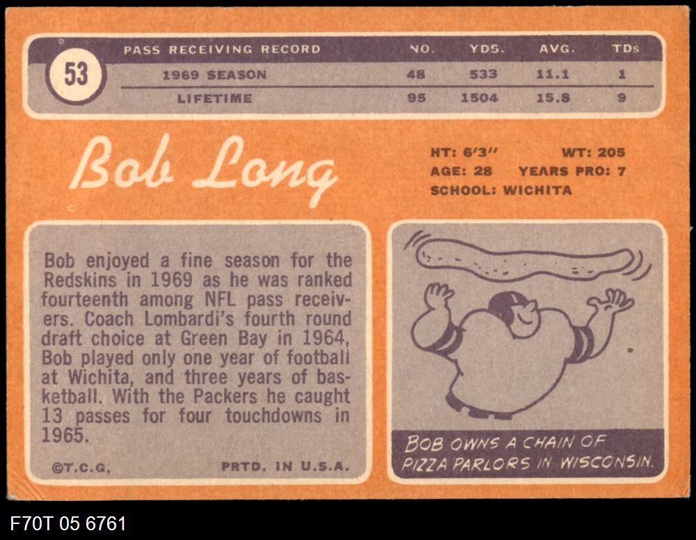 | 1970 Topps #53 Bob Long | 5 - EX | Front | Back |