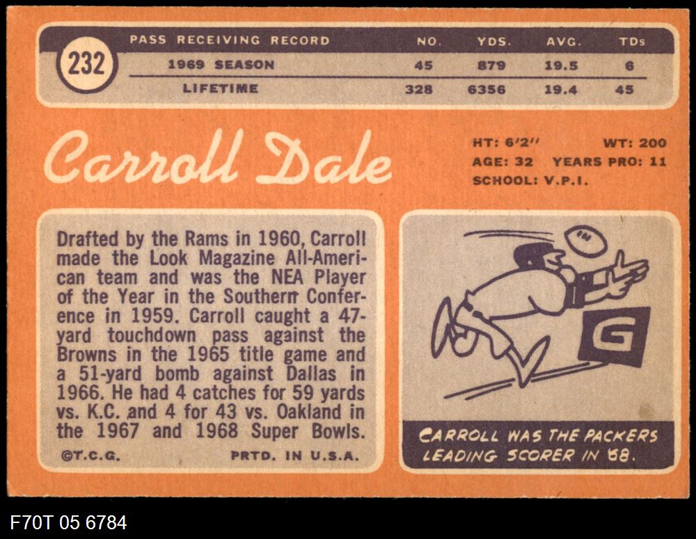 | 1970 Topps #232 Carroll Dale | 5 - EX | Front | Back |
