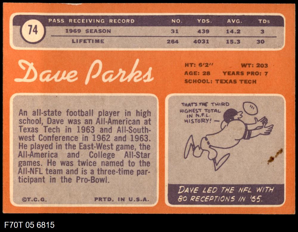 | 1970 Topps #74 Dave Parks | 6 - EX/MT | Front | Back |