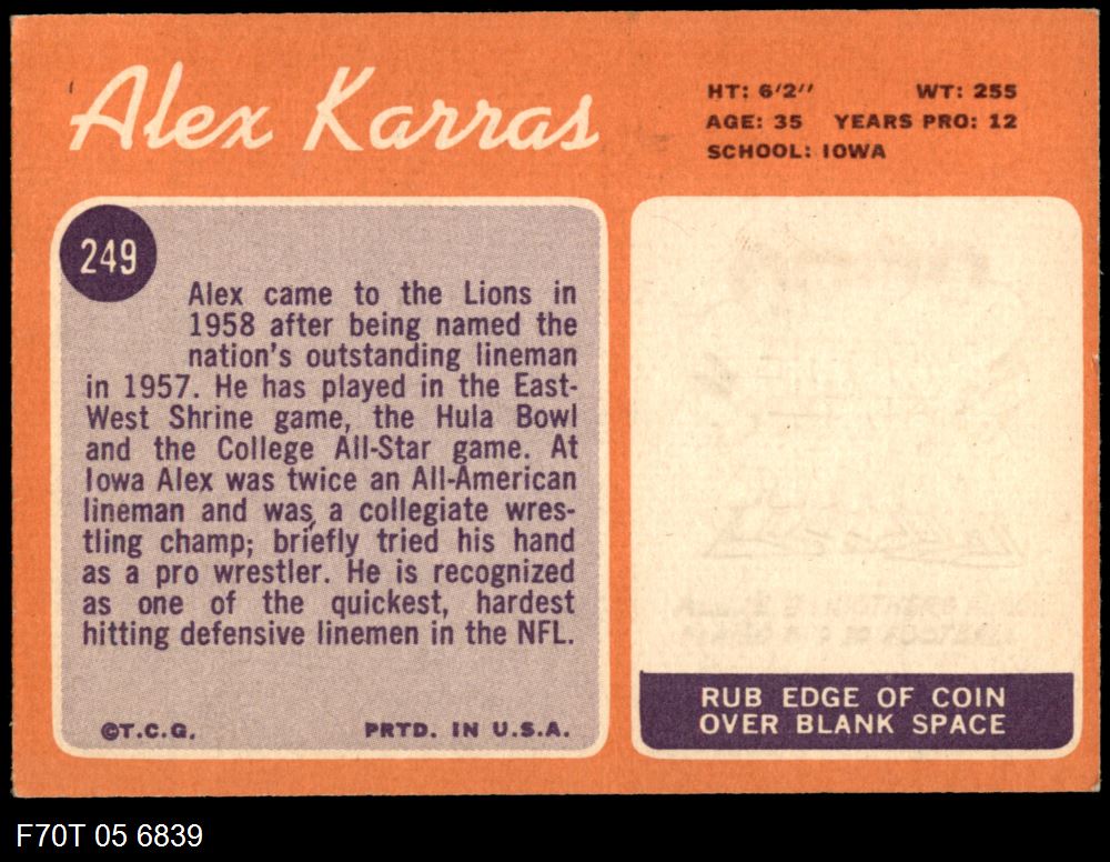 | 1970 Topps #249 Alex Karras | 5 - EX | Front | Back |