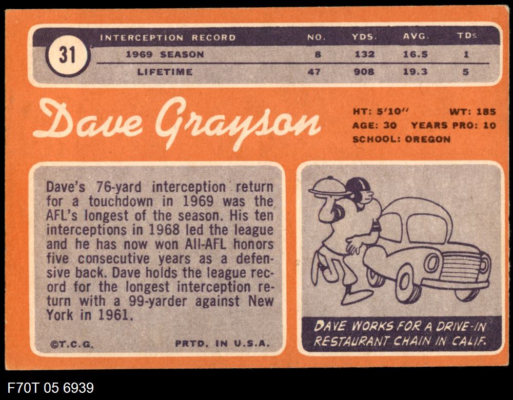 | 1970 Topps #31 Dave Grayson | 4 - VG/EX | Front | Back |