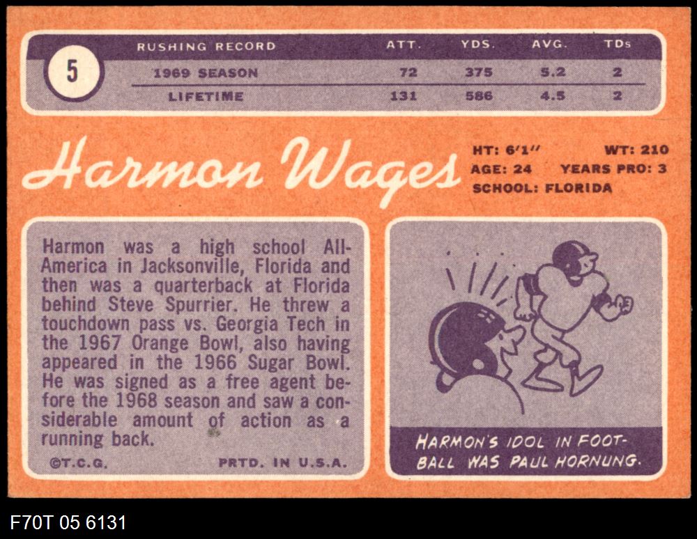 | 1970 Topps #5 Harmon Wages | 6 - EX/MT | Front | Back |