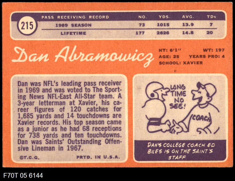 | 1970 Topps #215 Dan Abramowicz | 5 - EX | Front | Back |