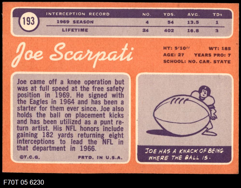 | 1970 Topps #193 Joe Scarpati | 5 - EX | Front | Back |