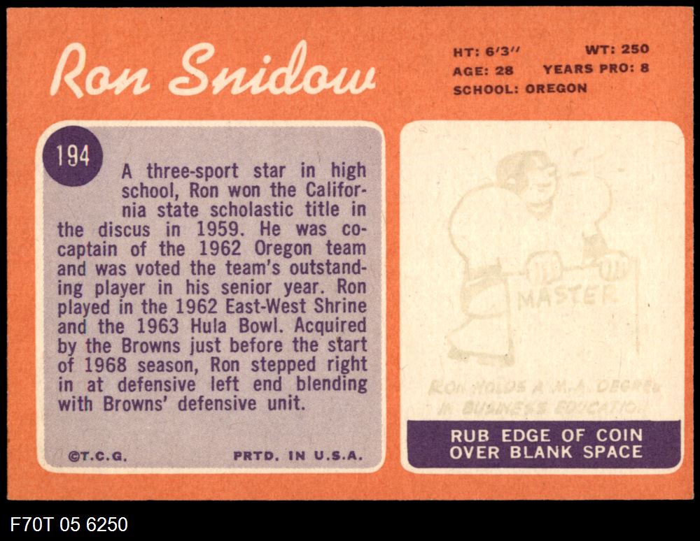 | 1970 Topps #194 Ron Snidow | 4 - VG/EX | Front | Back |