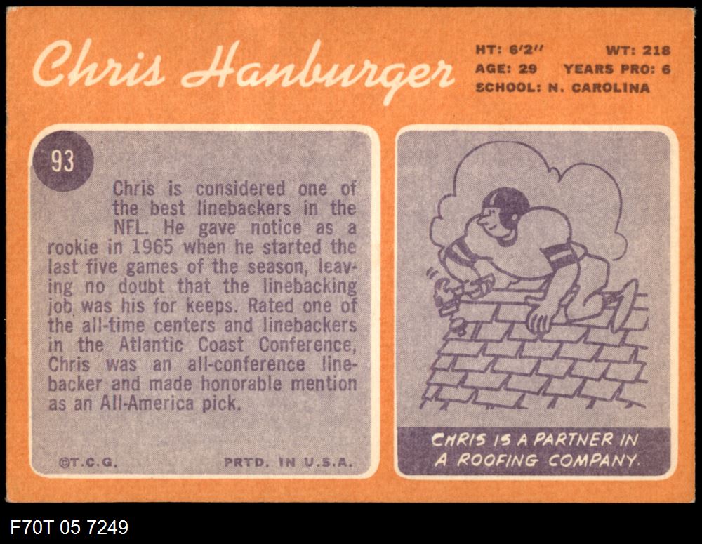 | 1970 Topps #93 Chris Hanburger | 4.5 - VG/EX+ | Front | Back |