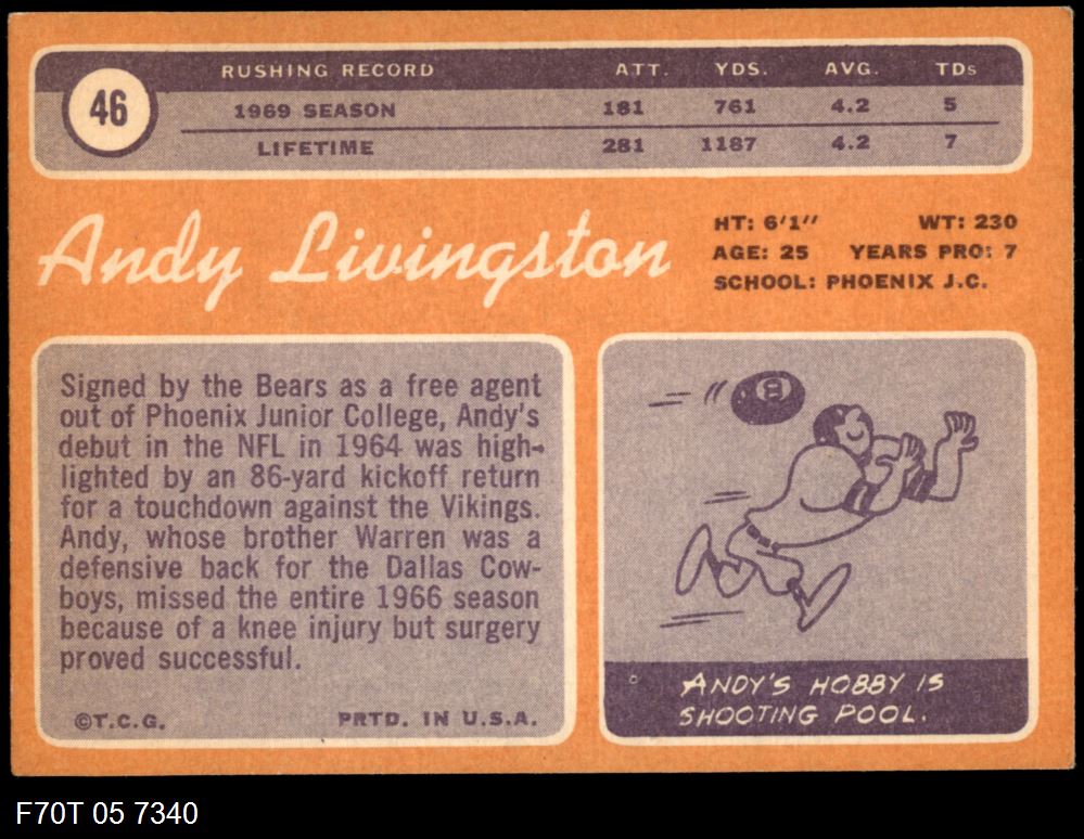 | 1970 Topps #46 Andy Livingston | 3 - VG | Front | Back |